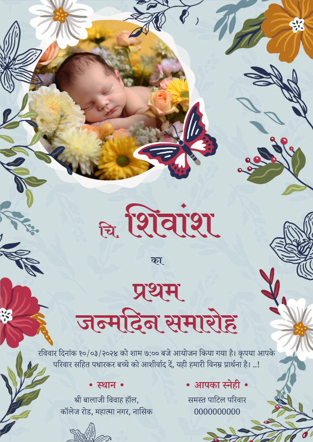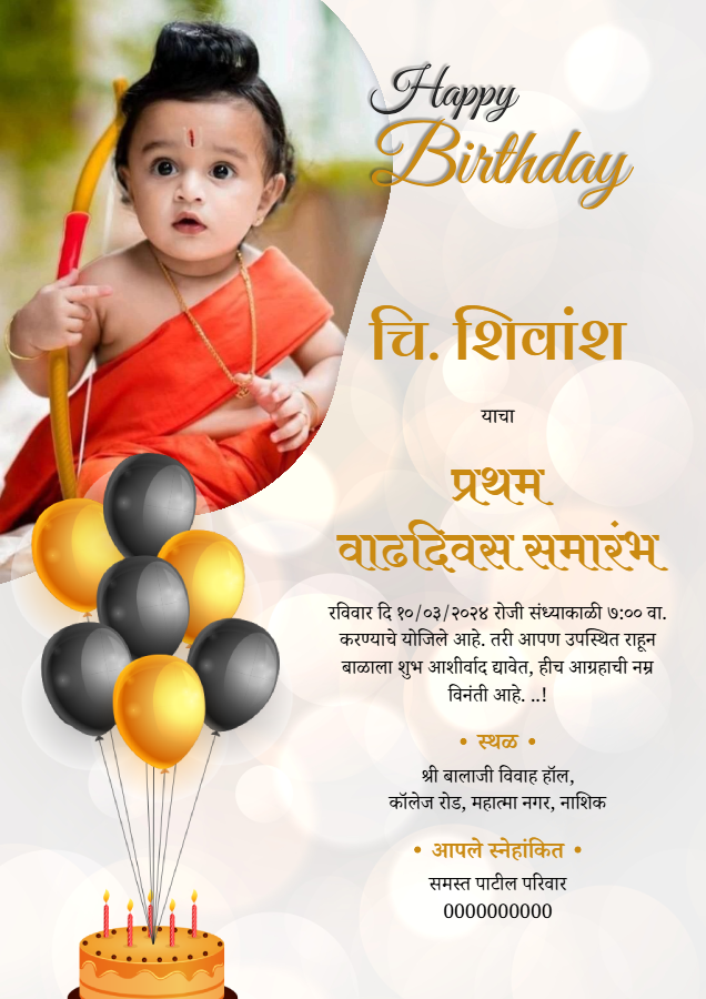 Design online invitations for weddings, engagements, baby showers, and birthday in Marathi, Hindi, or English. No design experience needed — just edit, download, and share!