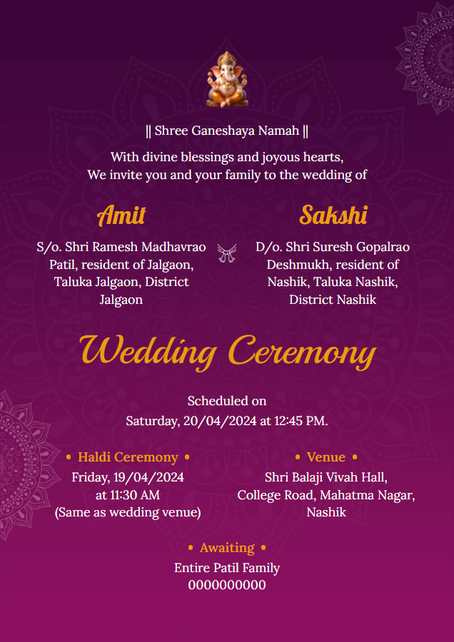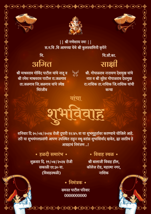 Create Free Marathi Invitation Cards Online | Quickkard